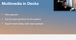 If you put a lot of words on a slide, it becomes really tough for the audience to read and listen to you at the same time 280 characters or the length of a tweet is a good rule of thumb. And remember the deck is the start of a conversation, it’s not supposed to include every single detail.